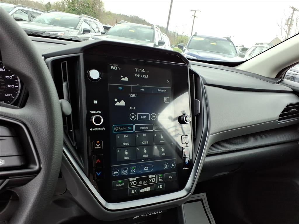 This Subaru Crosstrek is equipped with the latest generation of XM/Sirius Radio. Bluetooth® technology is built into this model, keeping your hands on the steering wheel and your focus on the road. Apple CarPlay: Seamless smartphone integration for it - stay connected and entertained on the go! It comes equipped with Android Auto for seamless smartphone integration on the road. See what's behind you with the back up camera on this unit. Lane Keep Assist in this unit helps maintain safe driving by gently steering to stay within the lane. It has automated speed control that adjusts to maintain a safe following distance, enhancing highway driving convenience. It keeps you comfortable with Auto Climate. This model features a HomeLink System. This unit is equipped with all wheel drive. The vehicle has a 4 Cyl, 2.5L high output engine. It shines with an exquisite metallic silver exterior finish. Set the temperature exactly where you are most comfortable in this Subaru Crosstrek. The fan speed and temperature will automatically adjust to maintain your preferred zone climate.