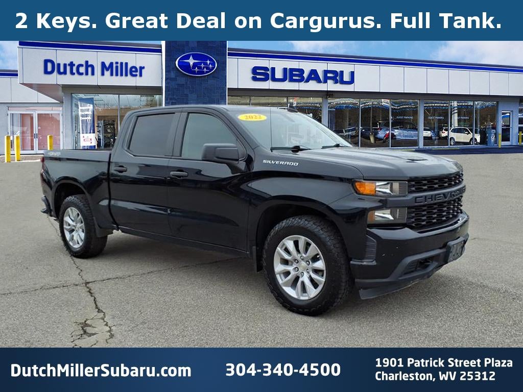 Find exceptional value in this 2022 Chevrolet Silverado 1500 Custom 4WD, now available in Charleston, WV. This rugged yet efficient pickup pairs a modern 2.7L 4-cylinder gasoline engine with four-wheel drive capability for confident performance on highways, work sites, and West Virginia backroads. Designed for practicality and comfort, the Custom trim delivers features that enhance daily driving and jobsite productivity. Key conveniences include Remote Start for climate-ready cabin access, Hands-Free Bluetooth® for safe, connected calling and audio streaming, and Apple CarPlay for seamless smartphone integration and navigation. The Back-Up Camera and XM Radio add safety and entertainment options that make every trip easier and more enjoyable. This Chevrolet Silverado 1500 Custom presents a strong combination of capability and fuel efficiency, with a user-friendly interior and durable exterior suited for towing, hauling, or weekend adventures. Well-maintained and competitively priced, this truck represents the best price in the market for comparable 2022 Chevrolet Silverado 4WD models in the Charleston area. Whether you need a dependable work truck or a versatile daily driver, this Chevrolet Silverado offers the features and value buyers demand. Schedule a test drive in Charleston, WV, today and experience this reliable 2022 Chevrolet Silverado 1500 Custom 4WD firsthand. Competitive pricing and a strong feature list make this a standout option.